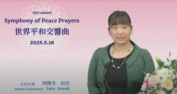 The Symphony of Peace Prayers, which has welcomed the participation of many people from all over Japan and around the world, is now being held for the 21st time, thanks to your continued support and goodwill. On this occasion as well, I would like to express my deep gratitude and sincere appreciation to all of you who are joining us through YouTube and gathering together with the booklet in hand.